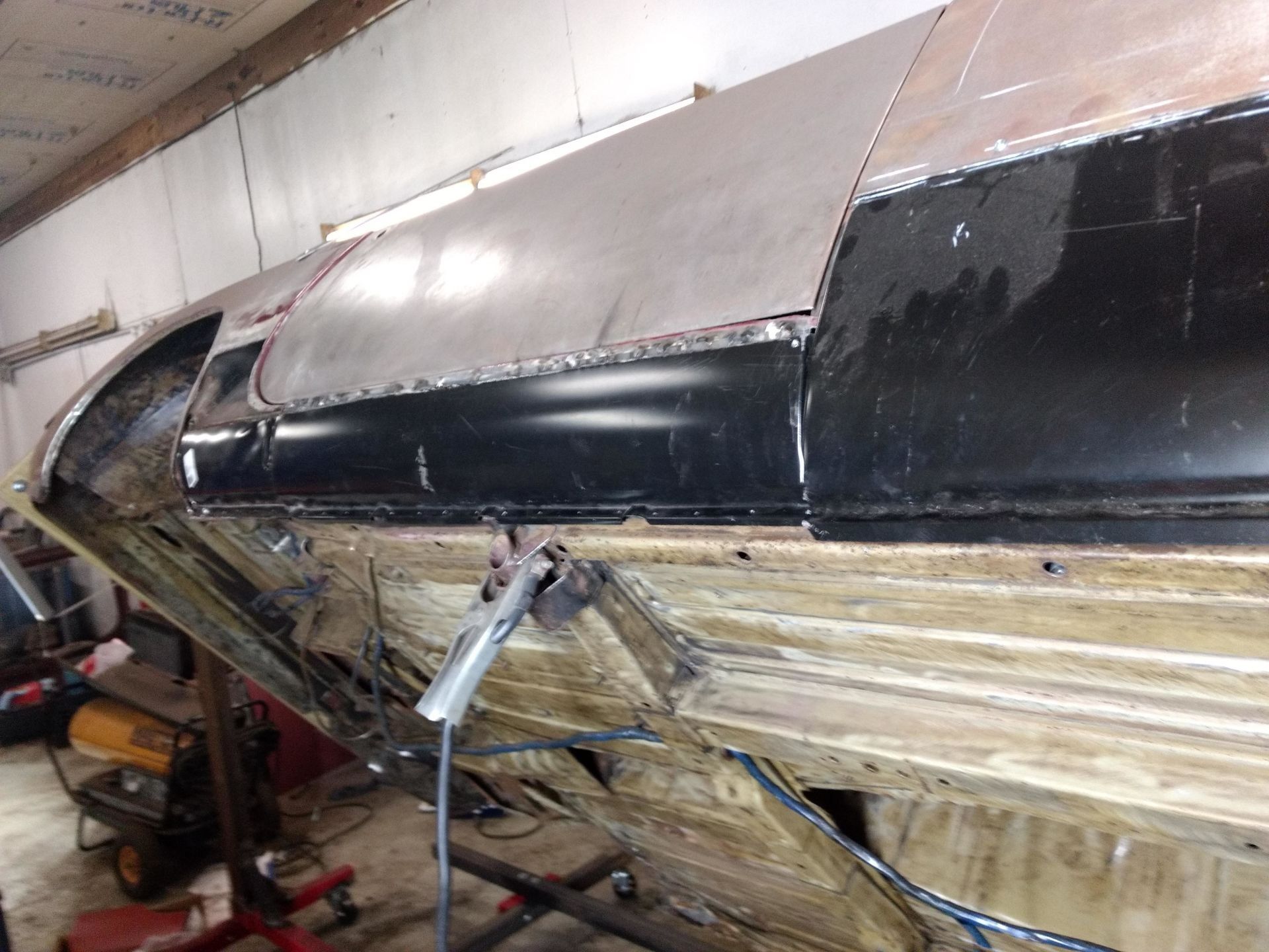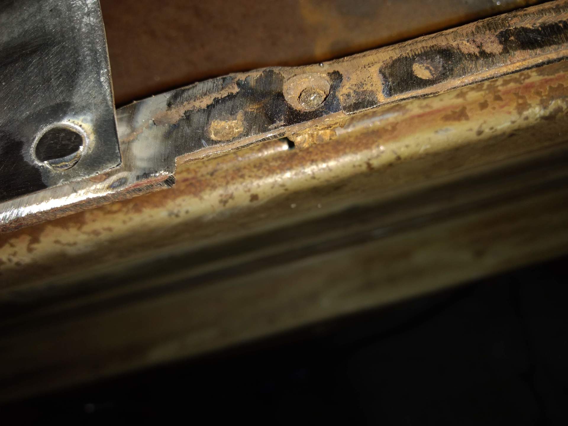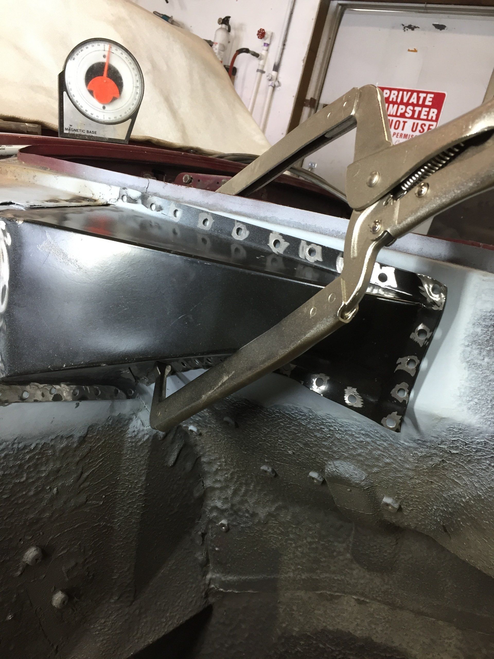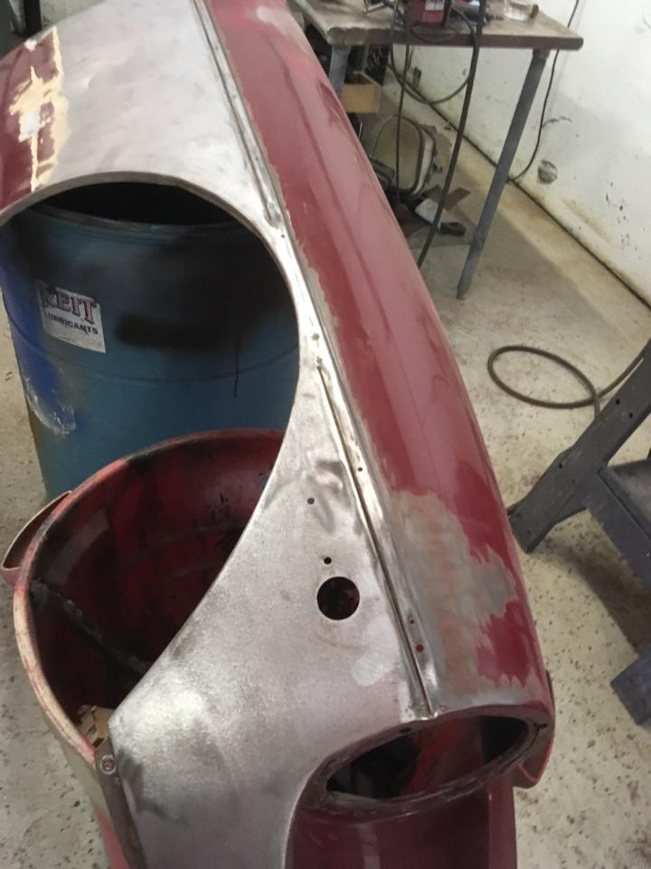 Here are some pics of metal removal, patch panel fab and installation to the inside of the PS rockers. One thing to pay attention to, as pointed out in the pics, and why I suggested purchasing completely new rockers, is the small rust holes that pop up as the metal is being cleaned and prepped. This is an issue throughout and some hole are much bigger than others. These will all be repaired with new metal as they are found, but will require more fab work & patching, which will require more finish work. I'm trying to balance it out for your budget, but it's a tightrope act and not my preferred way to do this.