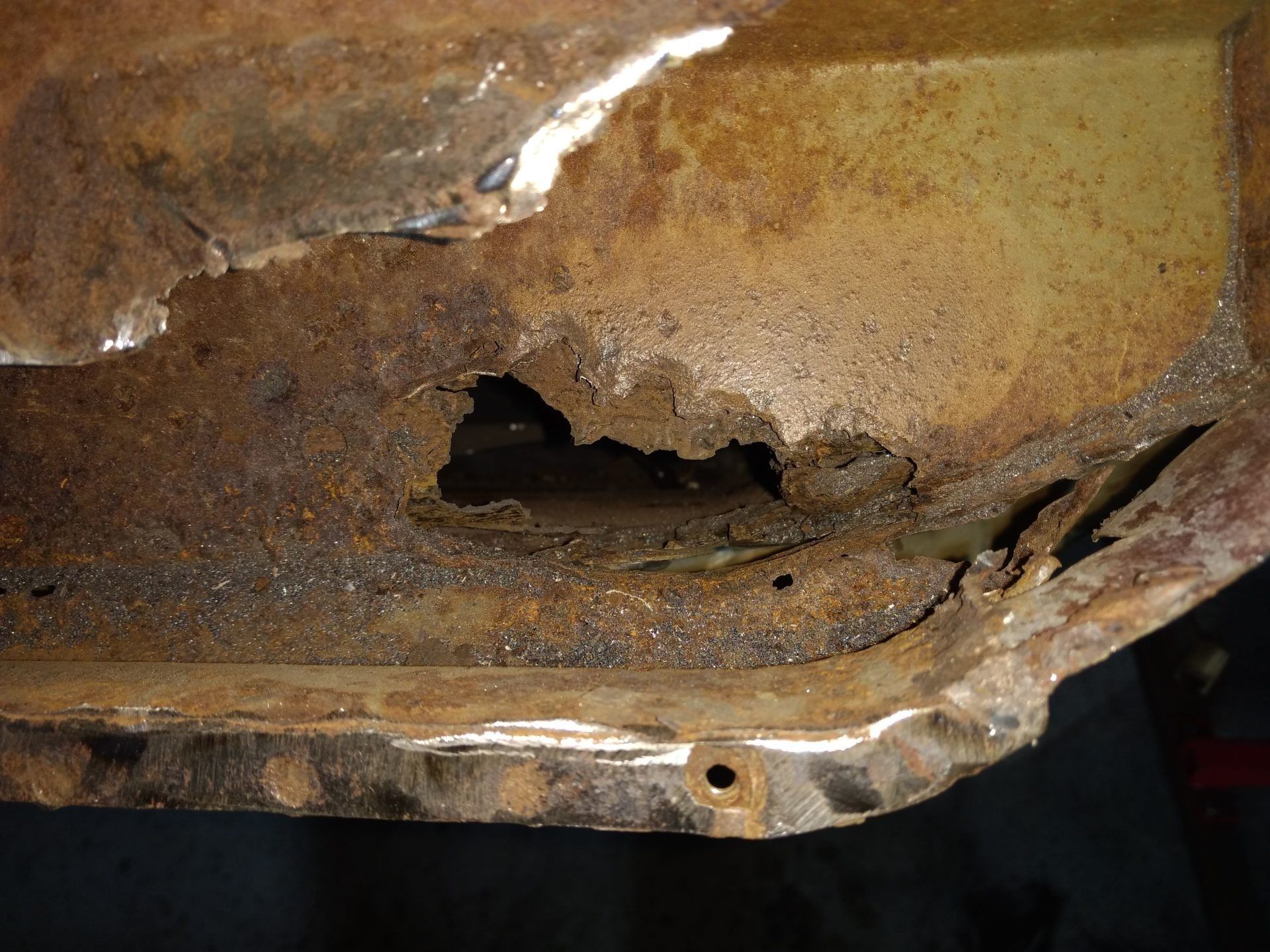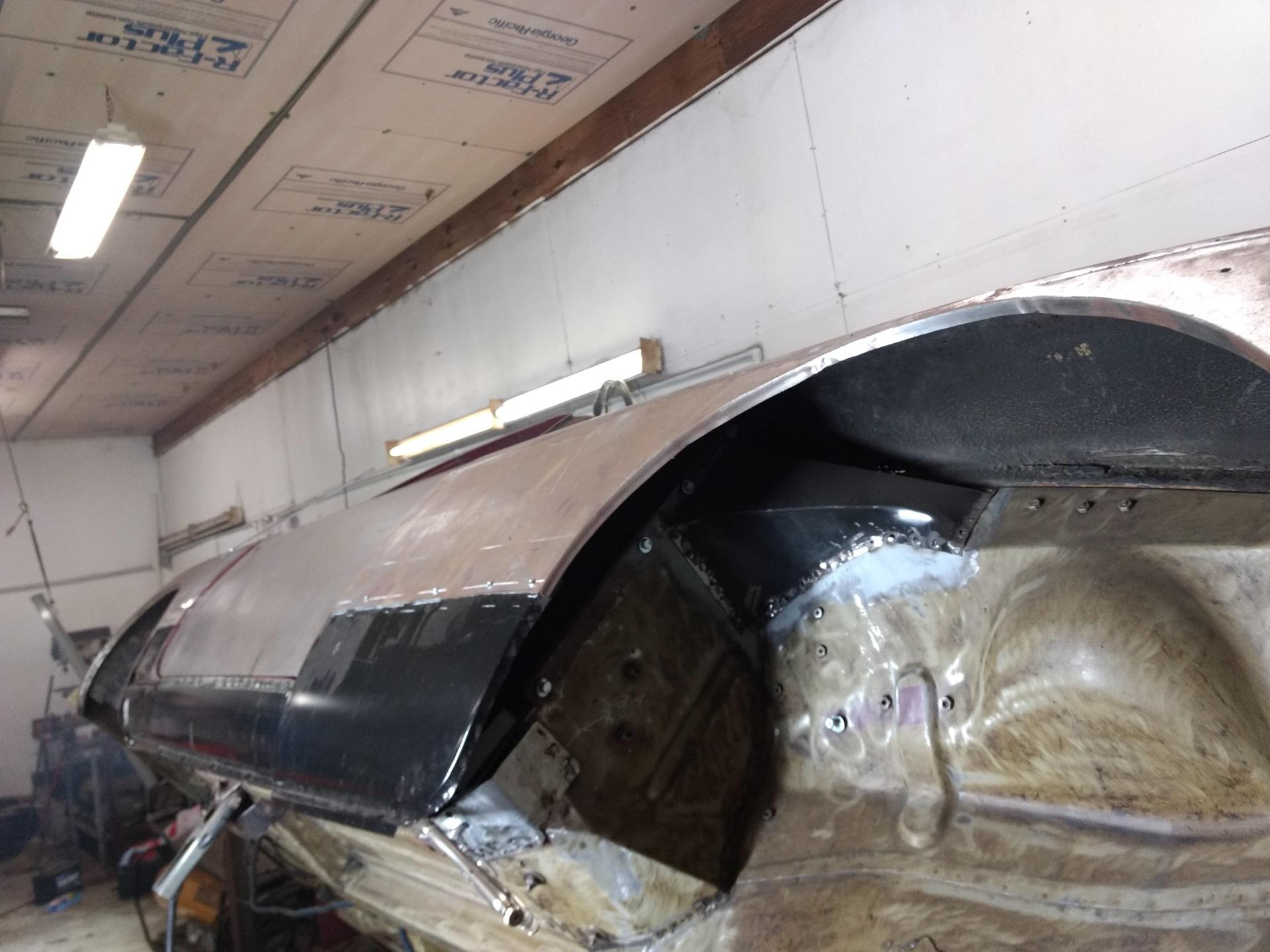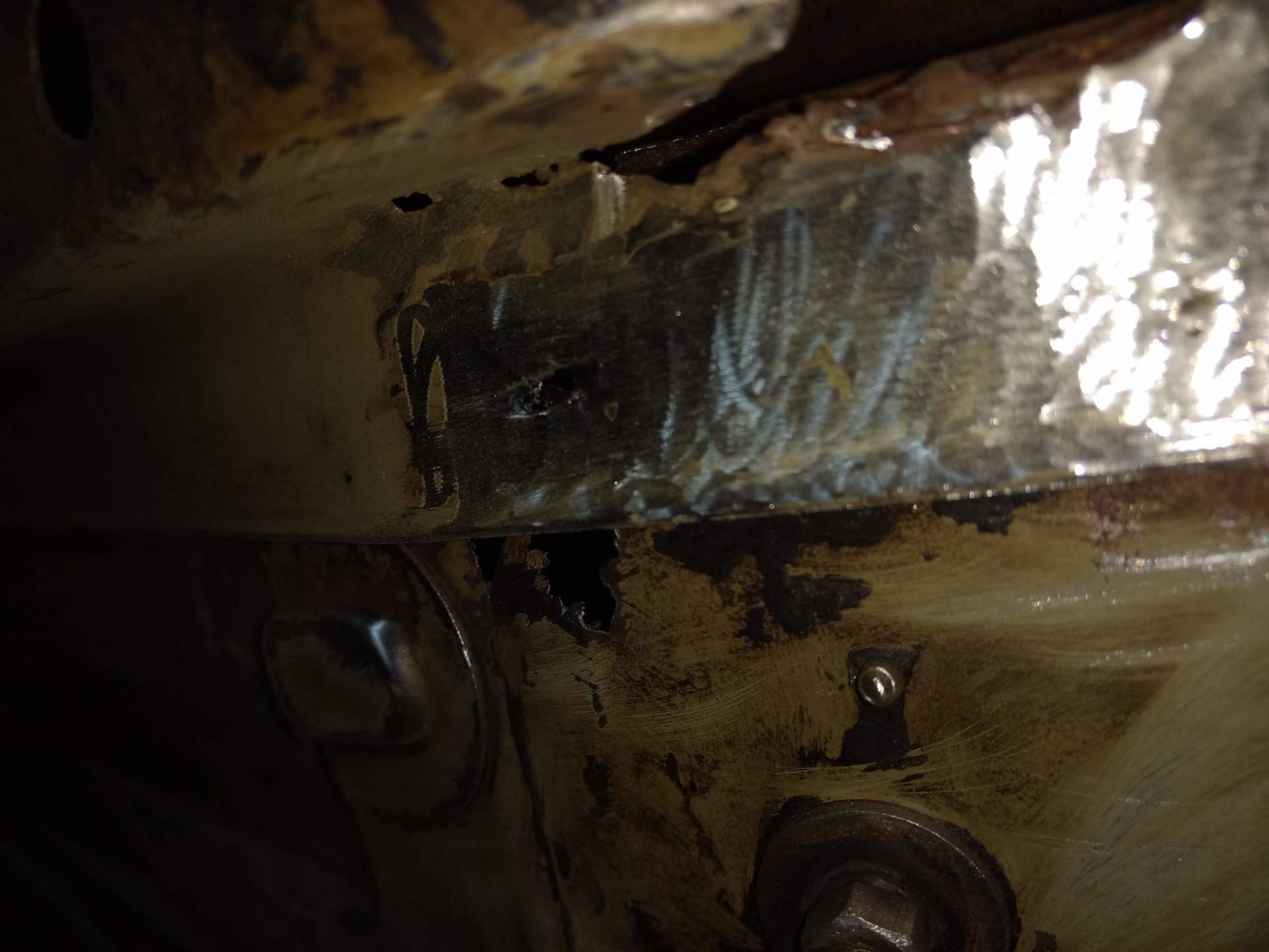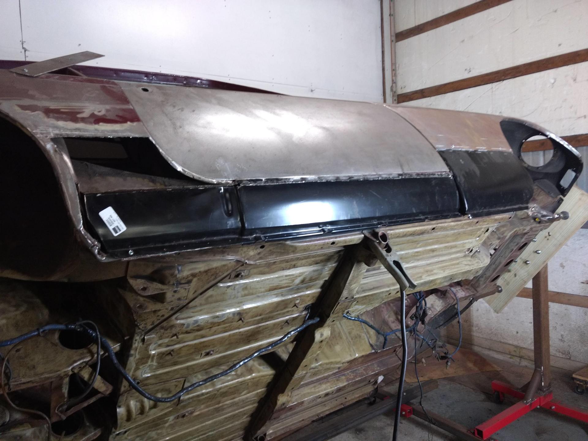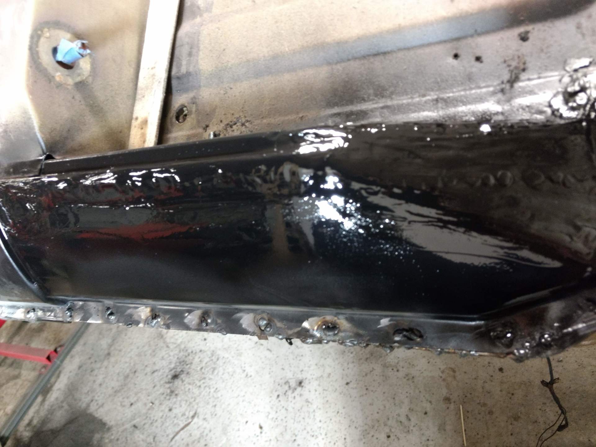 Here are some pics of metal removal, patch panel fab and installation to the inside of the PS rockers. One thing to pay attention to, as pointed out in the pics, and why I suggested purchasing completely new rockers, is the small rust holes that pop up as the metal is being cleaned and prepped. This is an issue throughout and some hole are much bigger than others. These will all be repaired with new metal as they are found, but will require more fab work & patching, which will require more finish work. I'm trying to balance it out for your budget, but it's a tightrope act and not my preferred way to do this.