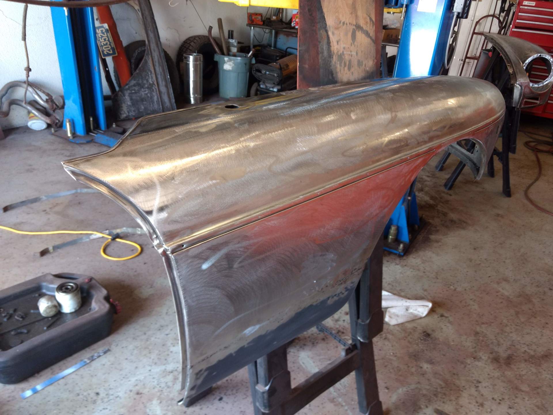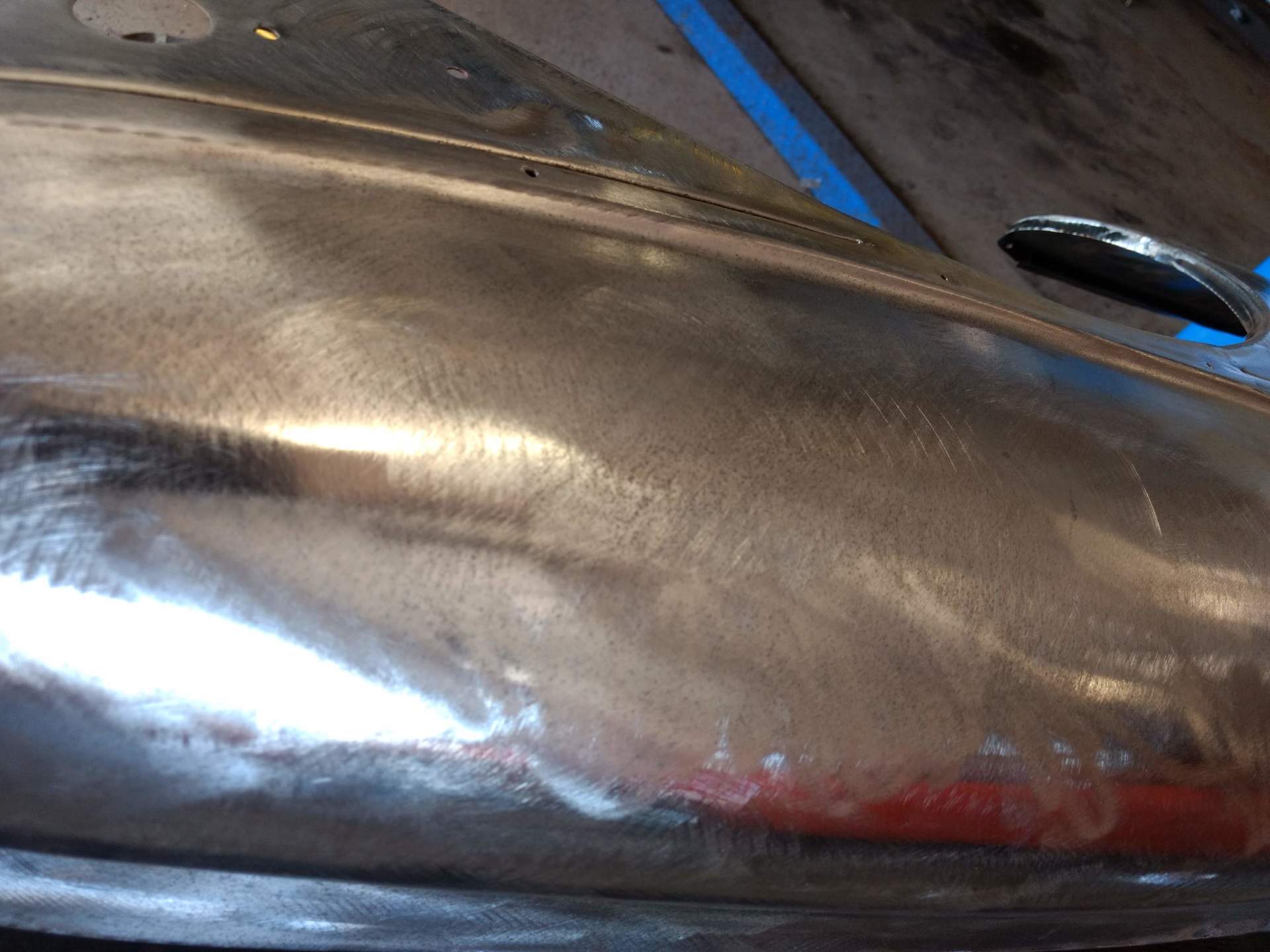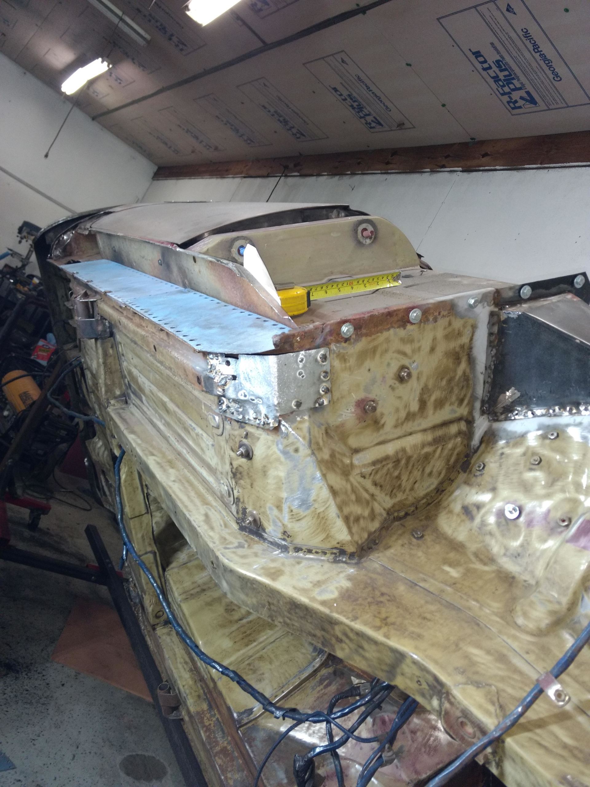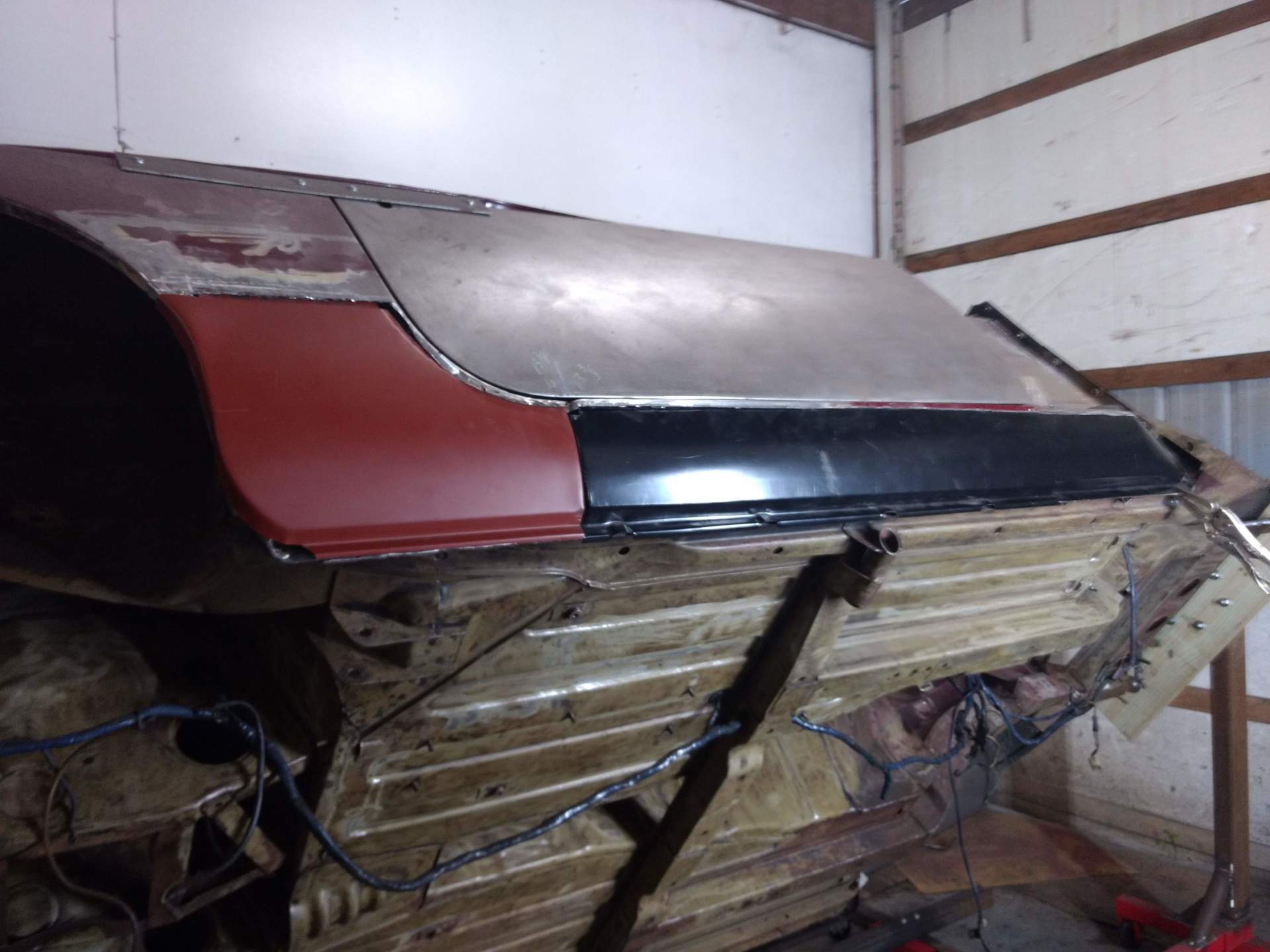 Here are some pics of metal removal, patch panel fab and installation to the inside of the PS rockers. One thing to pay attention to, as pointed out in the pics, and why I suggested purchasing completely new rockers, is the small rust holes that pop up as the metal is being cleaned and prepped. This is an issue throughout and some hole are much bigger than others. These will all be repaired with new metal as they are found, but will require more fab work & patching, which will require more finish work. I'm trying to balance it out for your budget, but it's a tightrope act and not my preferred way to do this.